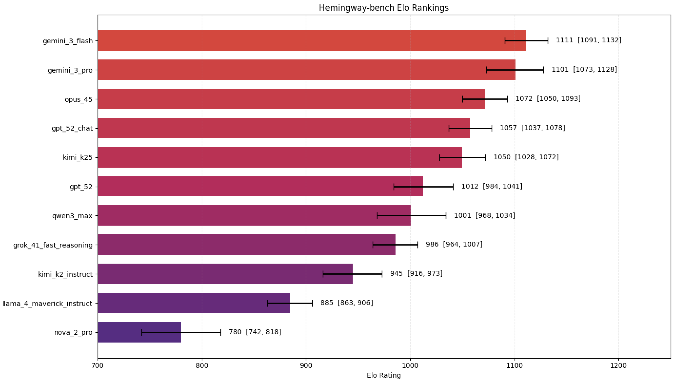 Hemingway-bench is our attempt to fix those foundations, and move towards a rigorous evaluation of AI prose and creativity.