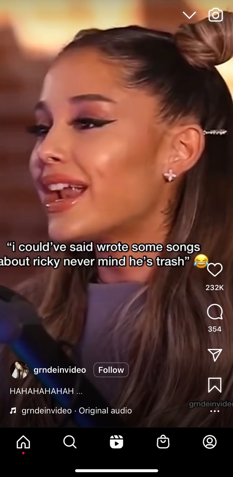 A canonical Instagram Reel. The video specs don’t even fit the screen and the resolution of the video was terrible. Also it has text all over the content. Looks like the junk you see on Facebook Watch.