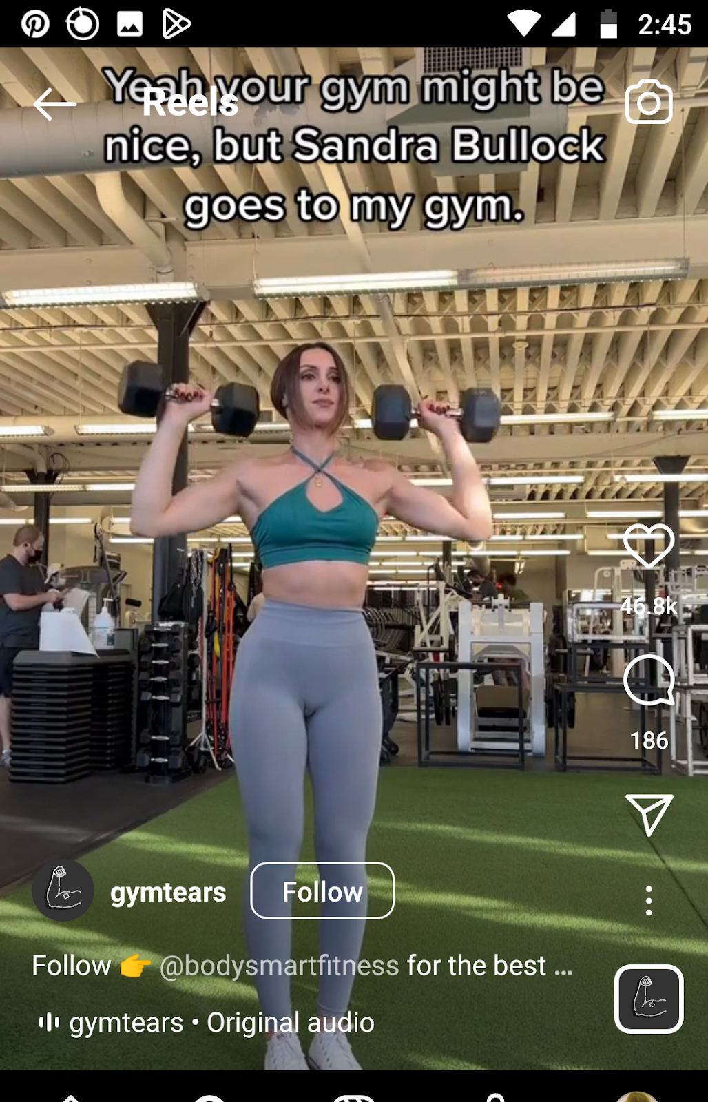 Which makes the whole video completely pointless and absurd. Not funny or informative in any way. May be entertaining for the kind of people who like obvious humor and laugh tracks, but to me it just feels fake, especially since the whole goal is to get you to “follow @bodysmartfitness”.