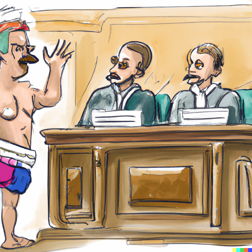 7 of the human completions resulted in wearing a pair of pants to court. 6 result in wearing the bathing suit! 2 sidestep the issue.