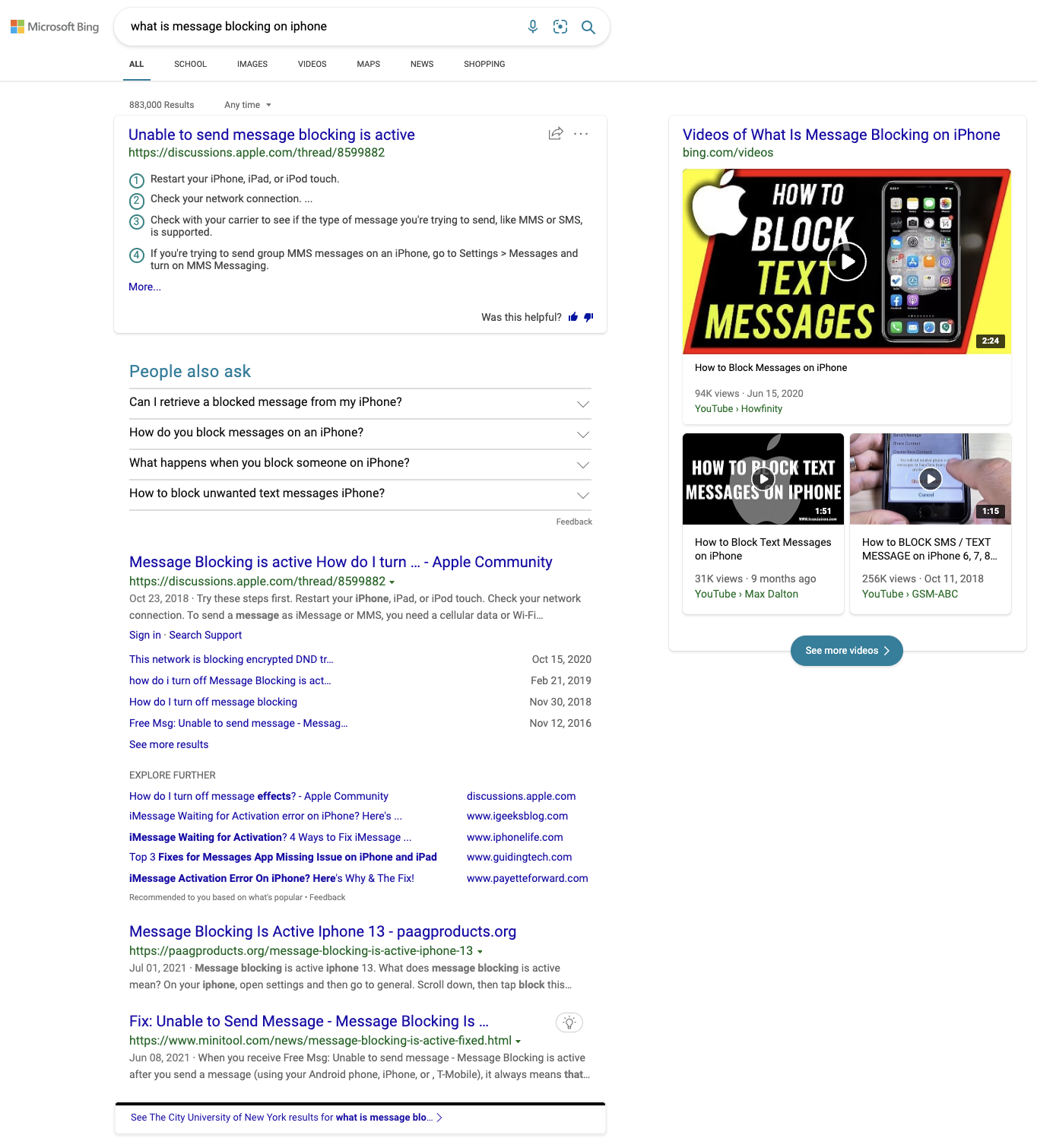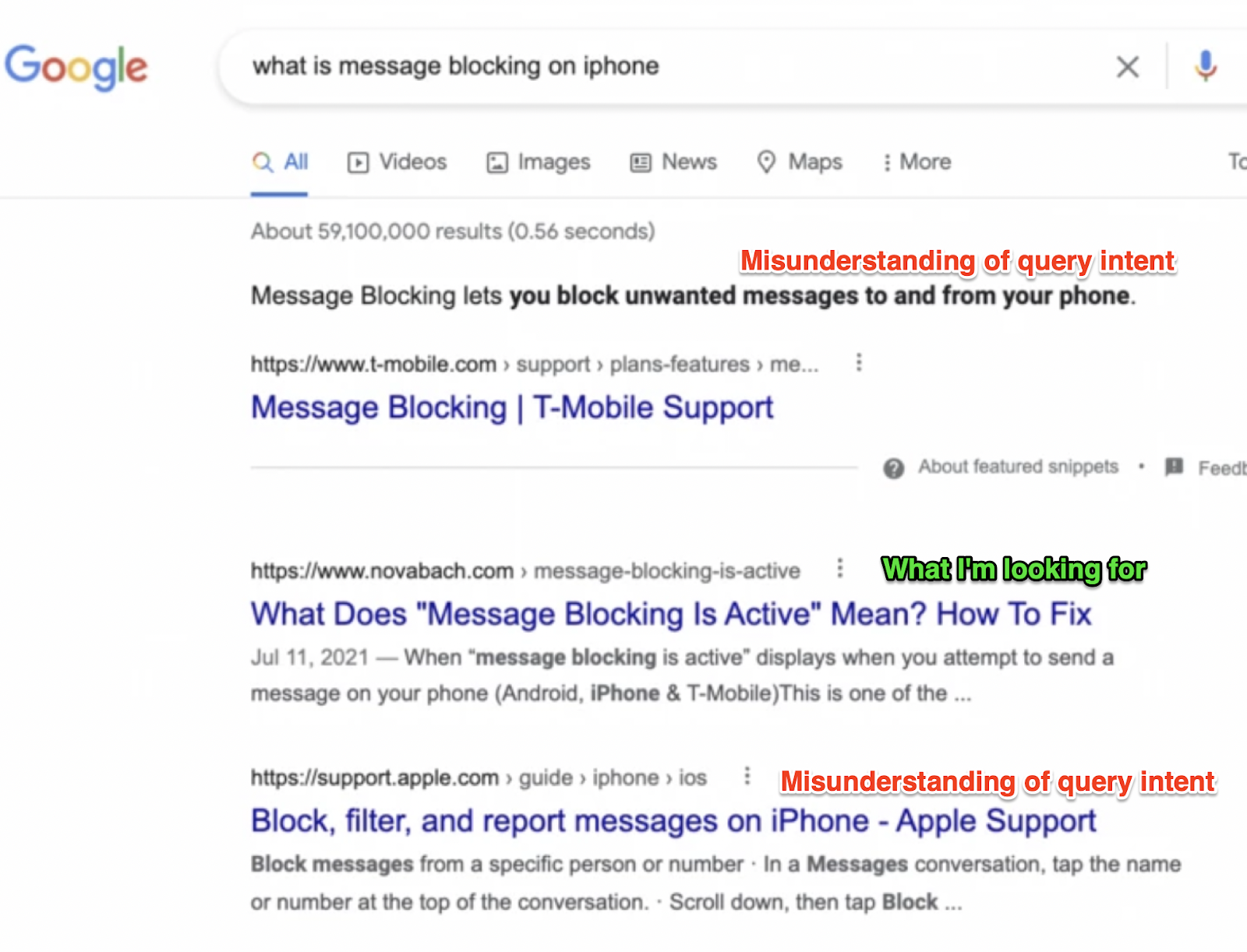 Explanation: The website search results all understood what I was looking for, and were related to the message I received.