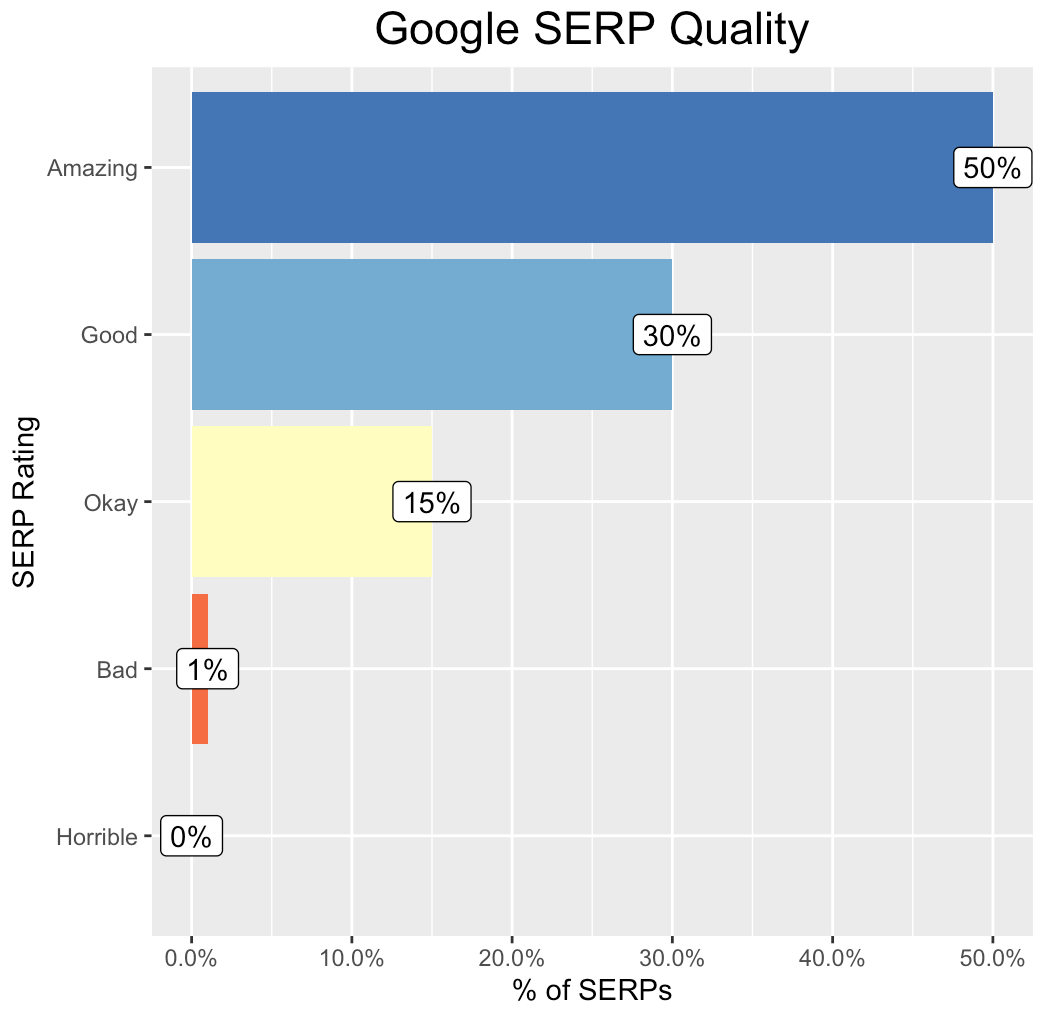- Each rater then explained their original intent, rated how well the Google SERP satisfied that intent on a 1-5 scale, and explained their judgment.