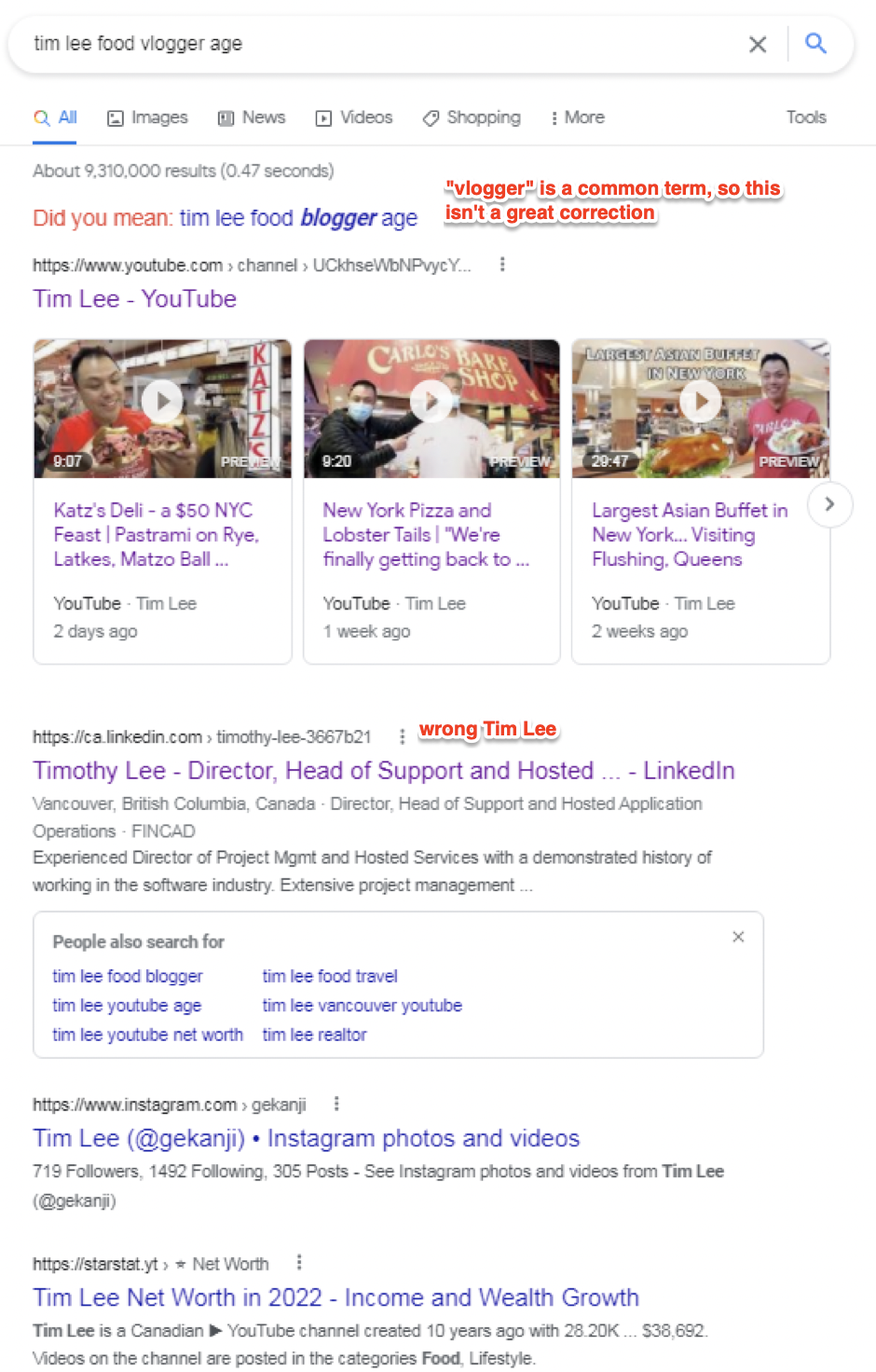 Intent: I wanted to know how old the YouTube vlogger Tim Lee is